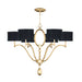 Chandelier in a gold leaf finish featuring black fabric outer shell shades with a gold metallic inner lining.