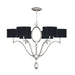 Chandelier in a silver leaf finish featuring black fabric outer shell shades with a silver metallic inner lining.