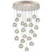 The Nebula creates the essence of cosmos through hand forming of optic impressions while infusing the crystal with the reflective quality dichroic glass. Each piece is as individual as the rainbows of light from the galaxies above. Gold-toned silver leaf canopy. Also available in platinized silver leaf with choice of additional crystal glass options. For 220V, item is configured with halogen G4 bulb(s).