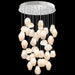 Master glass artisans blend quartz with other minerals to create Natural Quartz glass drop pendant with platinized silver leaf canopy. Also available in gold-toned silver leaf with choice of additional crystal glass options. For 220V, item is configured with halogen G4 bulb(s).