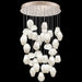 Master glass artisans blend quartz with other minerals to create Clear Quartz glass drop pendant with gold-toned silver leaf canopy. Also available in platinized silver leaf with choice of additional crystal glass options. For 220V, item is configured with halogen G4 bulb(s).
