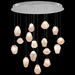 Master glass artisans blend quartz with other minerals to create Natural Quartz glass drop pendant with platinized silver leaf canopy. Also available in gold-toned silver leaf with choice of additional crystal glass options. For 220V, item is configured with halogen G4 bulb(s).