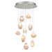 Master glass artisans blend quartz with other minerals to create Natural Quartz glass drop pendant with platinized silver leaf canopy. Also available in gold-toned silver leaf with choice of additional crystal glass options. For 220V, item is configured with halogen G4 bulb(s).