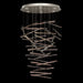 Elevate transcends your environment to new heights. Each glass spire is solid glass with contour carving and polishing and cased with a mixture of specialized crystalized silica to create a unique textural metallic surface. Illuminated from a silver leaf canopy and suspended by adjustable cables. This American handmade round fixture features 23 sculpted spires and is ideal for high ceilings.