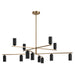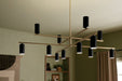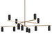 The Gala 12 light chandelier in champagne bronze with black has a modern design that commands attention. Its top and bottom clusters rotate independently of one another letting you choose your configuration. The top cluster faces up for indirect lighting that bounces down from the ceiling, while the bottom cluster faces down for direct, ambient lighting.
