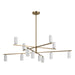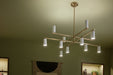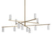 The Gala 12 light chandelier in champagne bronze with white has a modern design that commands attention. Its top and bottom clusters rotate independently of one another letting you choose your configuration. The top cluster faces up for indirect lighting that bounces down from the ceiling, while the bottom cluster faces down for direct, ambient lighting.