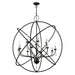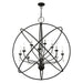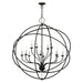 The delicate dangling crystals of the Aria collection adds an eclectic counterpoint to the grande luxurious orb. The twelve-arm light cluster nestled within orbiting rings features faceted clear teardrop crystals. This fixture will look fabulous in the the foyer or entryway. With its easy installation and low upkeep requirements, this light will not disappoint. It is shown in a black finish with brushed nickel finish candles.
