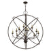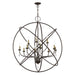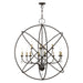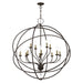The delicate dangling crystals of the Aria collection adds an eclectic counterpoint to the grande luxurious orb. The twelve-arm light cluster nestled within orbiting rings features faceted clear teardrop crystals. This fixture will look fabulous in the foyer or entryway. With its easy installation and low upkeep requirements, this light will not disappoint. It is shown in a bronze finish with antique brass finish candles.