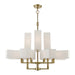 This chandelier from the Rubix collection has a crisp, clean look and contemporary appeal. The angular arms feature an antique brass finish. The oatmeal fabric hardback shades offers warm light for your surroundings.