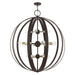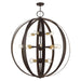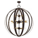 The Modesto collection hints at a casual mid-century modern vibe. It features steel straps that form beautiful circular shapes. The exposed bulbs and two-toned combination of finishes create a fashionable statement for today`s interiors. This sixteen-light globe foyer chandelier is shown in a bronze finish with satin brass accents. It will look fantastic in your mid-century modern loft or a foyer or any contemporary style interior.