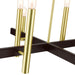 The dramatic lines of the Helsinki collection remind of early modern Scandinavian style. The massive candles rise on the contrasting bar at different heights dynamically emulating the shape of a city skyline. This eight-light exposed bulb chandelier comes in a satin brass finish accented with bronze finish bars. Great for any space where a dramatic statement is needed such as a foyer, dining room, living room or bedroom.