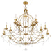 Simple elegance adorns the Chesterfield collection as strings of clear crystal gently cascade from a graceful frame of small scale tubing finished in antique gold leaf.