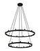 Need a statement piece - The Cascadian series will certainly deliver! Round and rectangular frames are both available and neither style will disappoint. Small glass shades line the Aged Gold Brass or Matte Black frame and are suspended by black fabric cords. Single layer and 2 two tier fixtures equally pack the WOW factor.