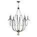 This series draws inspiration from regal agrarian manors, delivering a statement in its scale and sophisticated finishes. Designed in operatic proportions, the bottom chandelier assembly features swollen curves hand painted in a choice of Ecru White or Golden Noir and suspended by a rigid hook structure replete with vintage charm. These finish combinations not only add dimension and interest, but they are enhanced with the contrastingly brighter accents against the rich, weathered finishes. Extended chain links with smoky beveled crystal charms drape the Ecru and Gold Leaf finish combination, while the darker Golden Noir variation features strands of patinaed silver wooden beads.