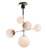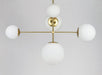 Inspired by both Mid Century Modern and Scandinavian Contemporary this collection spans a large breadth of today's interior design. Straight tubing finished in Satin Brass supports hand blown Satin White cased glass globes. Black accents of metal and Black marble add dramatic detail and upscale appeal.
