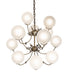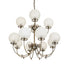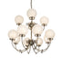 Combining the revival look of gas and electric reproductions, this magnificent chandelier offers an eye-catching look with 12 stunning Globe-styled elements offered in Clear Frosted Glass. An elegant frame, hardware, and scrollwork are featured in a luxurious Antique Brass. The decorative accents resemble authentic paddle switches used in antique lighting. The chandelier is ideal for illuminating lobbies and patron service areas in restaurants and retailers. The overall height of this pendant ranges from 38 to 84 inches, as the chain length can be easily adjusted on location to accommodate your specific lighting application needs. The Revival Gas & Electric 12 Light Chandelier is included in our American-designed handcrafted Revival Collection. UL and cUL are listed for dry and damp locations. The fixture is featured in the Splendid Restaurant in New York City and was specified by Cassidy Renee Studios.