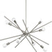 An iconic fixture, Astra features an organic, asymmetrical design. Ideal for dining room settings or entryways, these space-aged inspired pieces are so versatile they can be incorporated into a variety of interiors. Eight-Light Chandelier. Brushed Nickel finish.