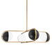 Capped opal glossy globes are suspended within elongated metallic bands for a look that is balanced and beautiful. The Patina Brass and Soft Black finishes work together to give the fixture an earthy, moody vibe. The clean lines and unique design bring a glamorous modern styling to any ceiling.