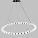 The Orbet 42 Chandelier by Sean Lavin is a modern upgrade to the classic ring design. Milk-glass orbs provide a soft diffused aesthetic for the integrated LEDs and are accented with metal spacers for a touch of contrast. This fixture is the perfect design for dining room, foyers, hospitality and more.