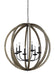 Visual Comfort Studio F3186/6WOW/AF Six Light Pendant, Weathered Oak Wood / Antique Forged Iron