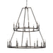 The transitional Landen features chandeliers with either our industrial Smith Steel finish details. This modern farmhouse collection is versatile enough to fit within a wide range of decor from farmhouse to urban loft. A grand 53" high two-tier chandelier makes a dramatic statement. All fixtures in the Landen collection are damp-rated, however, the chandeliers with the Antique Forged Iron/Painted Aged Brass finish include optional glass candle covers to protect the lamping from moisture.