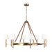 The Katie eight light single tier chandelier in time worn brass features leather straps suspended from the chain to round out the design of this timeless series.