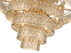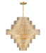Sparkling crystals glitter within the eight tiers that create the impeccable silhouette of a modern glam 25-light pendant. Stunning over a staircase or in a gorgeous dining room, the pendant pairs glittering oval crystals with oval cutouts that decorate each of eight, heirloom brass finished drums that create a stunning layered effect that's sure to captivate.