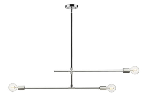 Toe the line on sleek modernist style with a fixture that becomes a primary element of custom décor. This three-light chandelier from the Modernis...