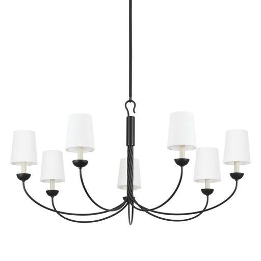 Stylish in its simplicity, the Montpelier chandelier features 5 or 7-candle sleeves topped with tapered white linen shades. A twisted central rod a...
