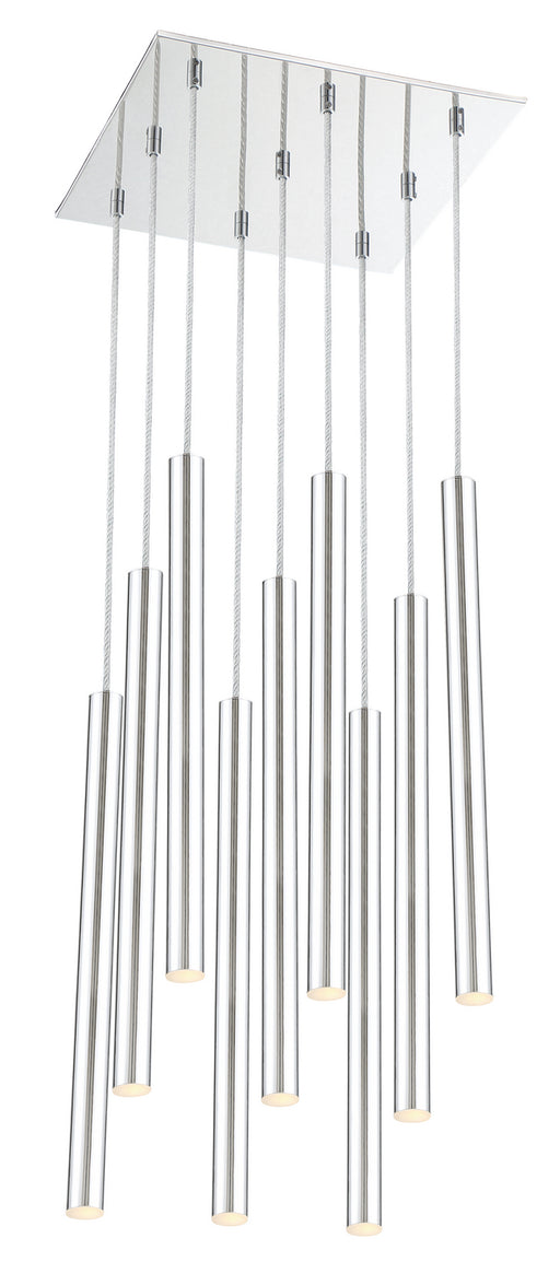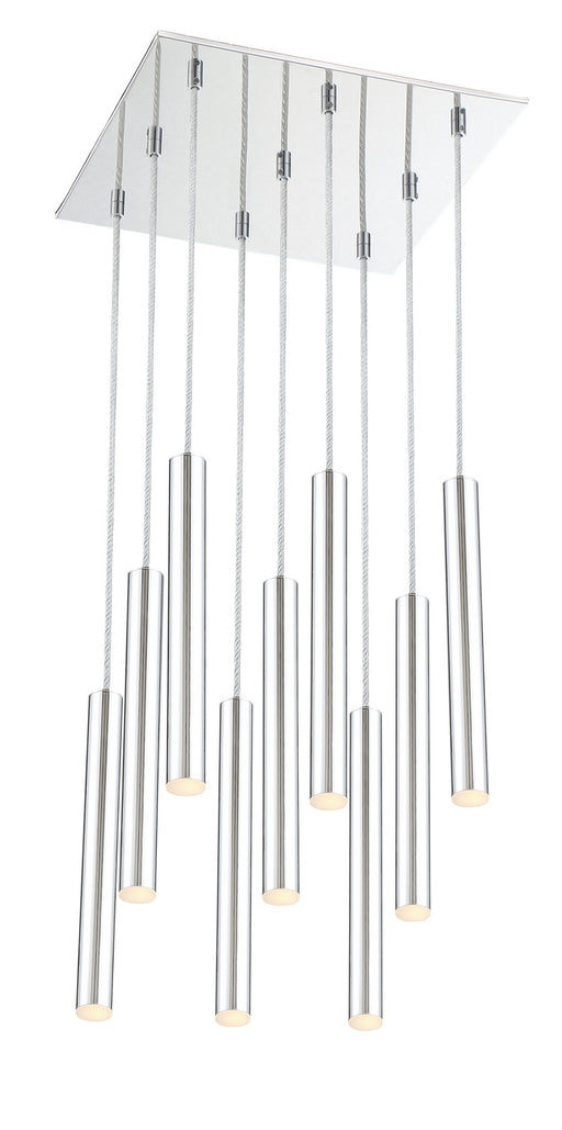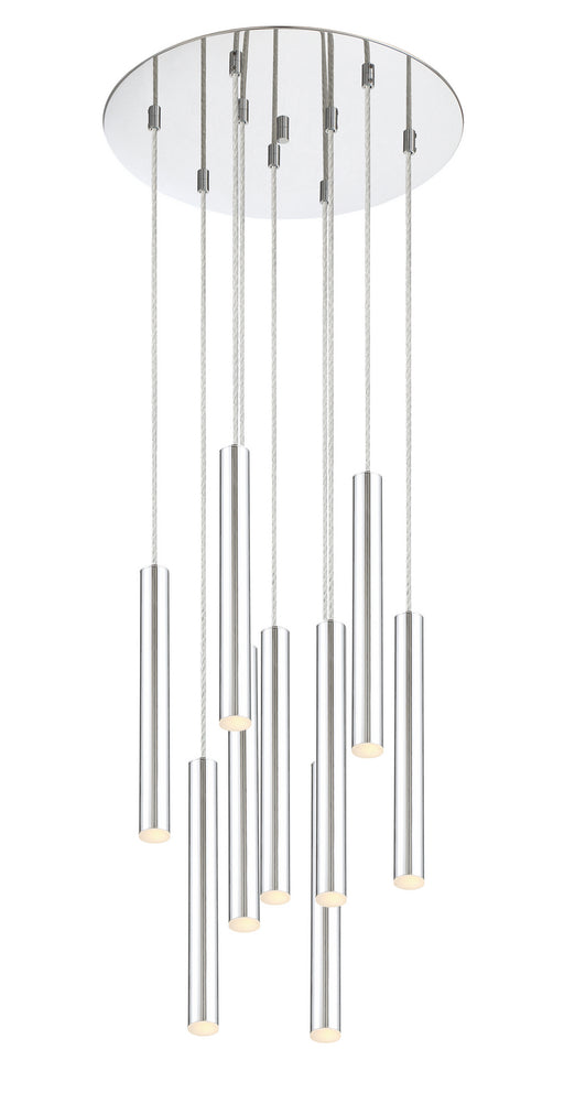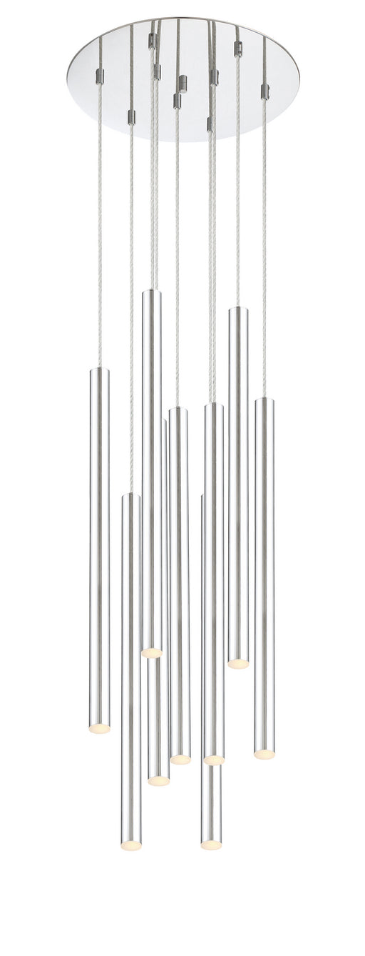 Shiny chrome from this nine-light pendant light elevates modern spaces with style. Sleek and stunning, the elongated lines in the silhouette radiat...