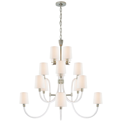Clarice Large Chandelier in Crystal and Polished Nickel with Linen ShadesDetails:Product Type: Glass ShadeFinish: Clear Acrylic with Polished Nicke...