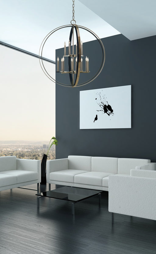 Details:Product Type: CandleFinish: Polished NickelMeasurements:Width / Dia: 36.00"Height: 28.00"Extension: 100.00"Chain: 6'"Canopy: 6.5" Diameter"...