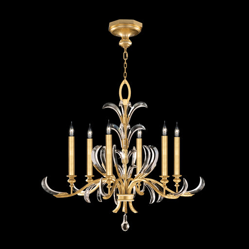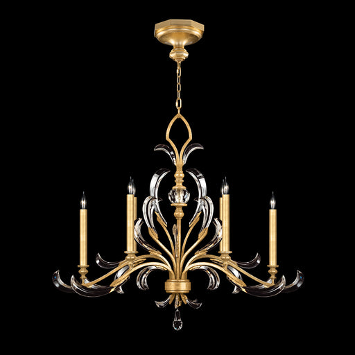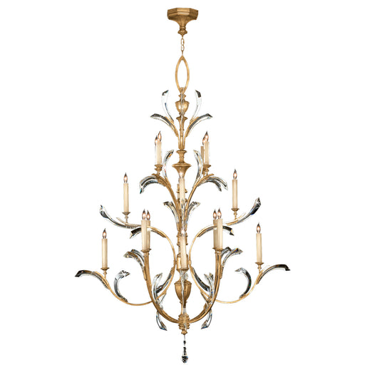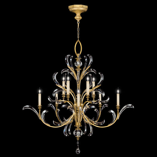 Chandelier in a warm muted gold leaf finish featuring beveled crystal accents.Details:Product Type: CandleFinish: GoldDesigner: Fine Art Handcrafte...