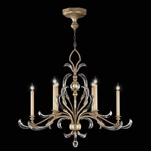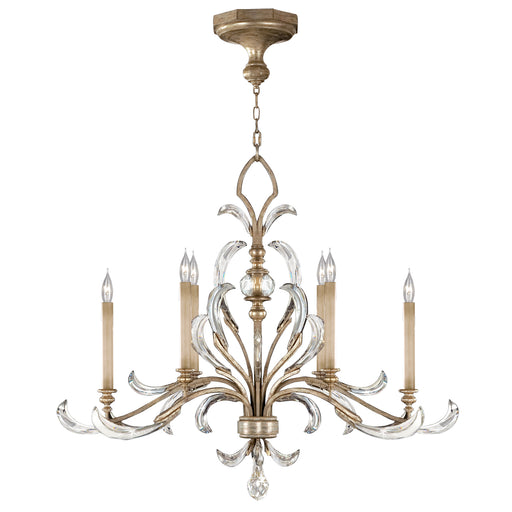 Chandelier in warm muted silver leaf finish. Features beveled crystal accents.Details:Product Type: CandleFinish: SilverDesigner: Fine Art Handcraf...