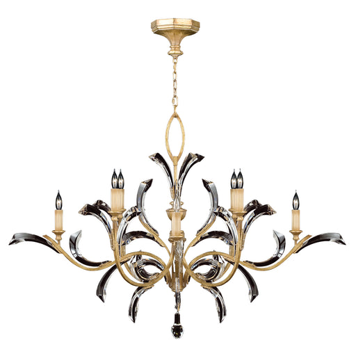 Oblong chandelier in a warm muted gold leaf finish featuring beveled crystal accents.Details:Product Type: CandleFinish: GoldDesigner: Fine Art Han...
