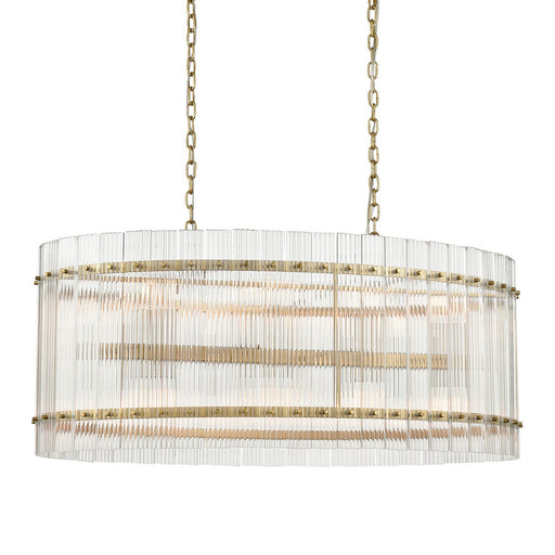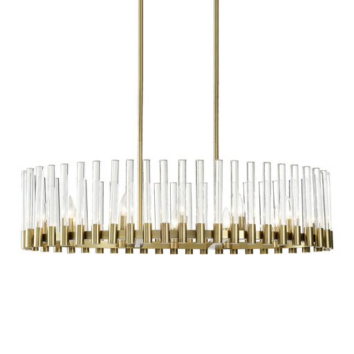 12-Light 40" Oval Contemporary Linear Chandelier with Solid Clear Glass Cylinders Placed within Decorative Aged Brass Frame.Details:Product Type: G...