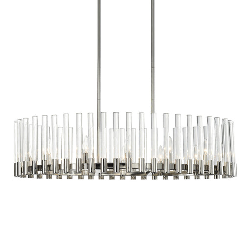 12-Light 40" Oval Contemporary Linear Chandelier with Solid Clear Glass Cylinders Placed within Decorative Polished Nickel Frame.Details:Product Ty...