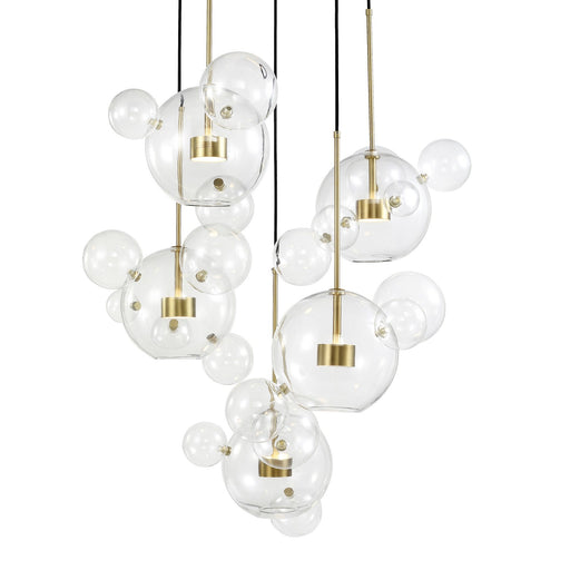 10-Light LED 44" Round Glass Multi-Pendant with Clear Glass Globes with Variety of Arrangements, Aged Brass Metal Finish and Replicable Integrated ...