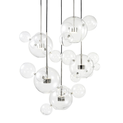 10-Light LED 44" Round Glass Multi-Pendant with Clear Glass Globes with Variety of Arrangements, Polished Nickel Metal Finish and Replicable Integr...
