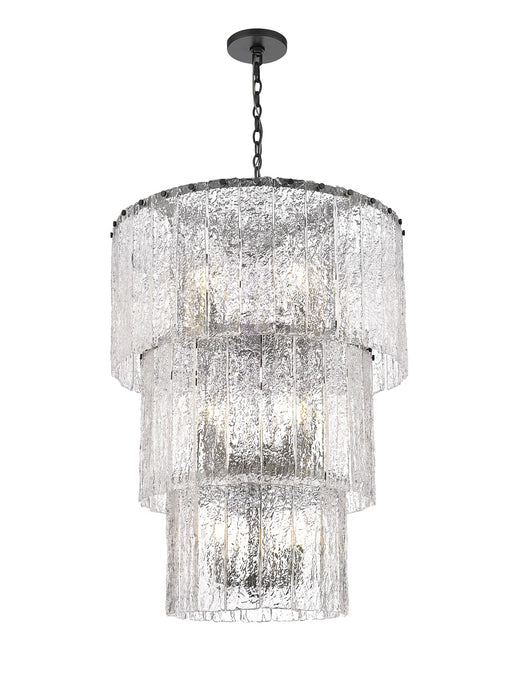 Three tiers of icy clear glass create depth and impressive artistry for this modern 12-light chandelier. Its durable steel frame receives a matte b...