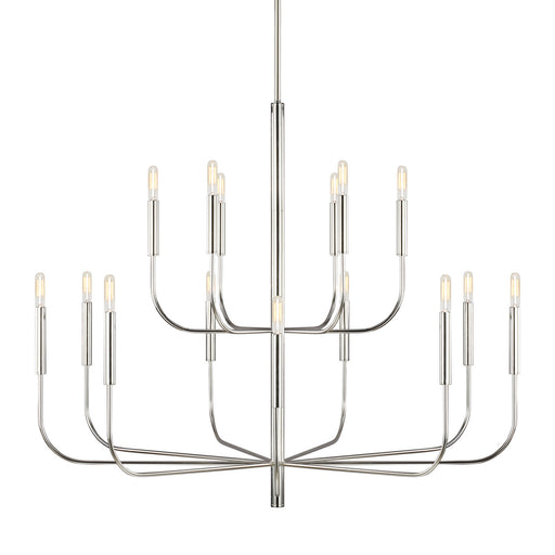 The Brianna fifteen light multi-tier chandelier in polished nickel has graceful, seamless curvature and elongated tubular arms that lend fluidity a...