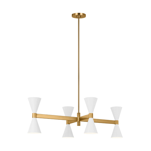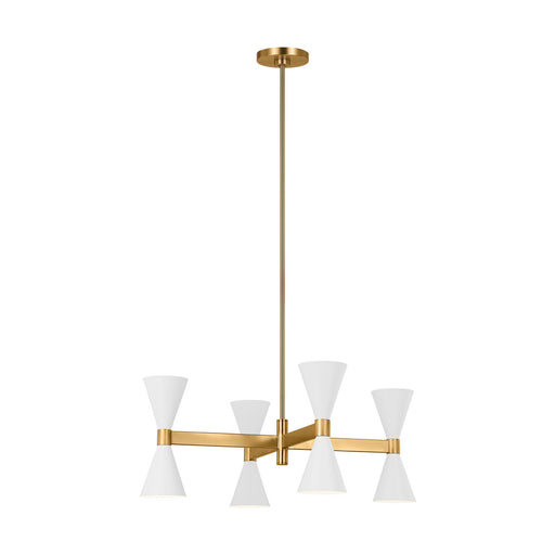 The Albertine chandelier by AERIN for Visual Comfort Studio Collection emits ample light above and below from eight conical lights on a crossed fra...