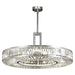 Chandelier in a modern design of multi-faceted crystal panels, set in silver-leafed metal frames that refract light and create an enchanting aura highlighting appointments and transforming a space with extraordinary effect