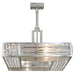 Chandelier in a modern design of multi-faceted crystal panels, set in silver-leafed metal frames that refract light and create an enchanting aura highlighting appointments and transforming a space with extraordinary effect