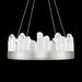 Reversible LED pendant influenced by the ephemeral appearance of illuminated rock crystal, which has been interpreted into handmade glassworks with the collaboration of the Fine Art studio glass master craftsmen. Formed of glass spires that mimic natural crystal formations as much as they do rays of sunlight, and clean metal lines in unadorned but precious finishes. Available in silver leaf, gold leaf or patinated bronze.