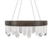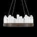 Reversible LED pendant influenced by the ephemeral appearance of illuminated rock crystal, which has been interpreted into handmade glassworks with the collaboration of the Fine Art studio glass master craftsmen. Formed of glass spires that mimic natural crystal formations as much as they do rays of sunlight, and clean metal lines in unadorned but precious finishes. Available in silver leaf, gold leaf or patinated bronze.