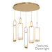 Inspired by the myths and legends of the ancient Oracle of Delphi, this pendant features hand formed glass and is set within a silhouette whose form above all emphasizes purity. Each single hanging pendant also features a down light. Available in silver leaf, gold leaf and hand rubbed black iron with gold leaf interiors.