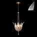 Interweaving signature Fine Art studio glass with the noble element of our handmade metal fabrication, this soft gold leaf pendant combines classical lines with a contemporary glass design. Each plume is handblown and sculpted with a translucent mixture of clear crystal and white glass.
