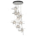 A show-stopping design, the Tura's perpendicular, intersecting metal pieces are crafted from annealed aluminum that are hand textured using a trip hammer and custom dies by Vermont artisans. Nine pendants are each customizable in length on a round canopy to create the ideal staggered effect to suit its space. Shades are made of double layers of thick, clear, seeded glass. The Tura 9-Light multi-port chandelier is a stunning focal point, and available in all standard finishes.