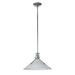 The Henry Medium Pendant with Glass Shade is part of the very popular Henry Collection offering both indoor and outdoor fixtures. A thick conical clear glass shade is held by steel arms with the Henry's hallmark rivets. Available in all standard finishes.